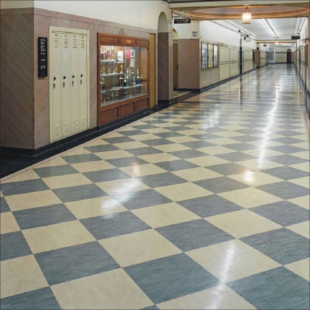 ⑵从形态上分为卷材地板和片材地板2种;所谓卷材地板就是质地较为柔软的一卷一卷的地板,一般其宽度有1.5米、1.83米、2米、3米、4米、5米等,每卷长度有7.5米、15米、20米、25米等,总厚度有1.6mm-3.2mm(仅限商用地板,运动地板更厚可达4mm、5mm、6mm等)。片材地板的规格较多,主要分为条形材和方形材。