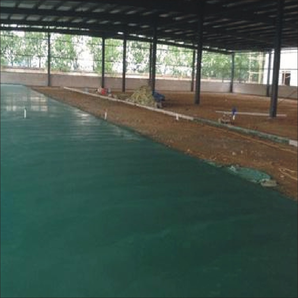 ② 均匀撒布量3/5的材料于混凝土表面,撒布硬化剂务必均匀以防造成表面刚度不一使得后期使用时因为环境条件变化使表面脱落。